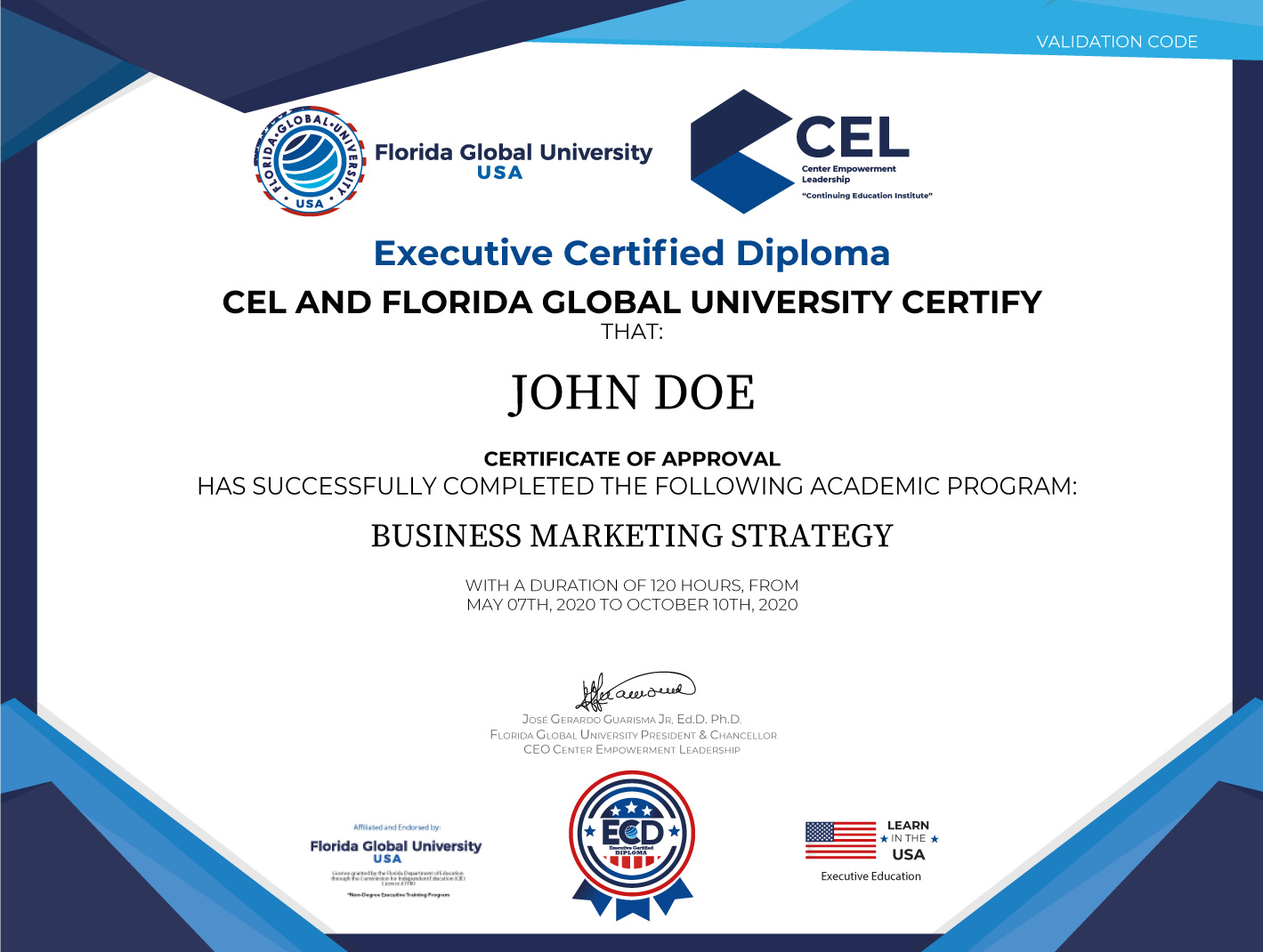Gracias al aval académico de Florida Global University, universidad norteamericana con validez en todo el mundo.
